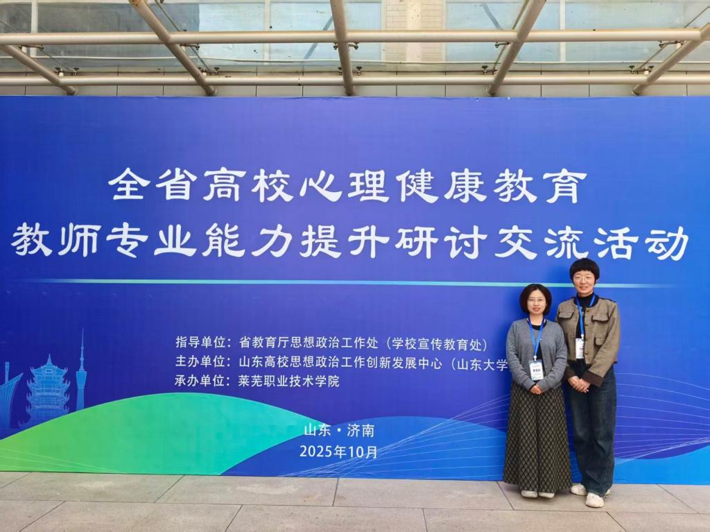 10月23日-26日,山东省高校心理健康教育教师专业能力提升交流活动在莱芜职业技术学院举办,我校大学生心理健康教育中心教师成永新、李晓晓受邀参训。