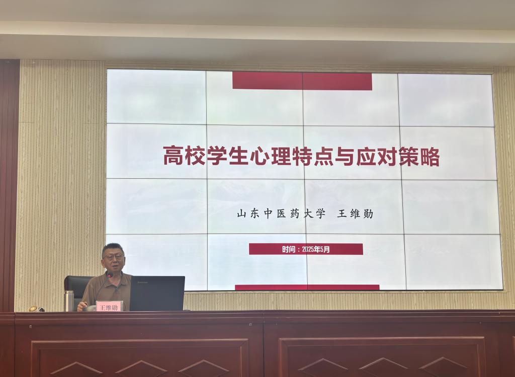 5月27日,学校举办2025年第三期辅导员培训班,邀请山东中医药大学应用心理学教研室主任、心理学硕士研究生导师王维勋教授作辅导报告。学生工作处副处长张晓琳主持讲座,研究生处、各二级学院党委副书记、全体辅导员、学生工作处全体工作人员参加培训。