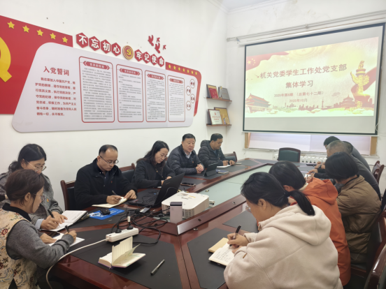 10月27日下午,机关党委学生工作处党支部开展第八期(总第七十二期)集体学习。学生工作处党支部书记安军主持会议并讲话,支部全体党员参加学习。