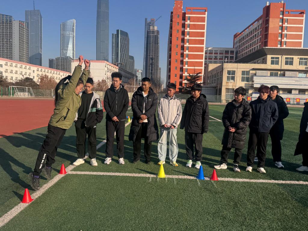 作为山东省首批红色文化传承示范高校,学校始终将国防教育融入人才培养全过程。本次训练严格对标定兵系统最新大纲“五维四型”体能考核标准,聚焦部队训练核心需求,设置1000米跑、立定跳远、实心球投掷、坐位体前屈、跳绳五大关键训练项目,全面锤炼学生力量、速度、耐力与协调性。体育教学部专业教师团队全程驻场,通过动作示范、精准纠错、个性化指导等方式,帮助参训学生掌握科学训练方法,有效突破体能短板,为适应军营高强度训练奠定坚实基础。训练现场,学子们精神抖擞、斗志昂扬,在奔跑与跃动中展现出新时代青年应征入伍、报效祖国的坚定决心。