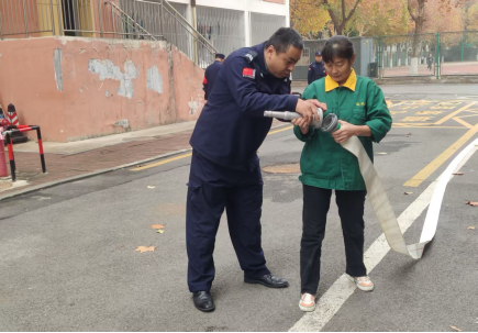 讲解结束后,培训进入实操演练环节。参训人员逐一实操灭火器和消防栓的规范使用。程霞培重点演示了灭火器的操作步骤,以及消防栓水带连接、阀门开启等关键流程,对实操过程中出现的不规范动作逐一纠正,确保参训人员都能熟练掌握消防器材的使用技巧,真正做到“懂消防、会操作、能处置”。