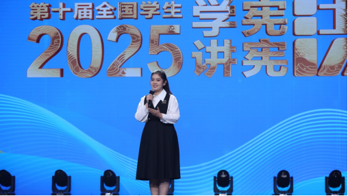 本次山东赛区决赛为期两天,分为主题演讲与命题演讲两轮赛制。在主题演讲环节,童予人同学以《以文化之韵传宪法之光,以青年之声扬法治之道》为题,巧妙融合宪法知识与越剧文化,深入阐释了宪法与中华优秀传统文化在价值理念上的内在契合,展现出宪法精神深厚的历史底蕴与鲜明的时代内涵。命题演讲中,她以《宪法照亮奋斗路,劳动铸就青春梦》为题,围绕公民的劳动权利与义务,结合时事热点展开论述,演讲逻辑清晰、情感真挚,两轮表现均获全场最高分,赢得了评委与观众的高度认可,最终摘得省赛桂冠。