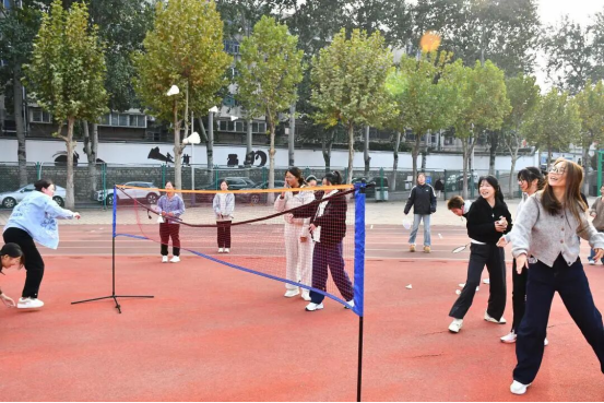 该项目要求四人一组,两组同台对战,小组成员需默契配合不让排球落地。赛场上,大家心往一处想、劲往一处使,在攻防互动中享受着团队凝聚力带来的胜利喜悦,排球化作联结彼此的纽带,有效增进了同学间的交流与情谊。