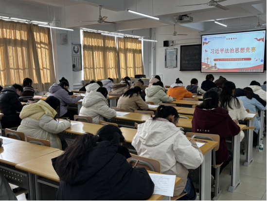 竞赛现场秩序井然,参赛同学们全神贯注,冷静思考、沉着应答,充分展现了经贸学子严谨务实的治学态度与积极进取的精神风采。竞赛题目紧扣习近平法治思想的核心要义与精神实质,全面检验同学们对这一重要思想的领悟与掌握程度。
