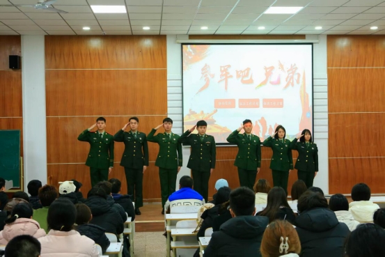 为积极响应国家征兵号召,深入推动国防教育进校园,激发广大学子投身军营、报效祖国的热情,12月4日晚,商学院在笃行楼502教室举办2026年度“春季征兵宣讲”活动。商学院党委副书记苑锦锋、辅导员朱昱宁和各年级有参军意向的学生出席活动。