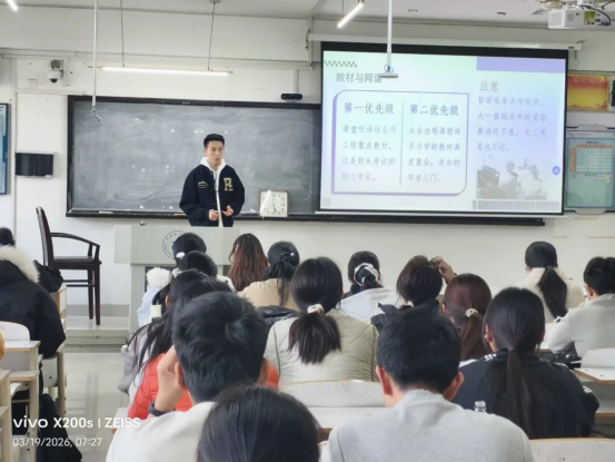 宣讲人结合自身成长经历,从专业学习、时间管理、备考规划等多个维度展开分享。他们以鲜活的案例、接地气的表达,将晦涩的学习方法转化为可复制、易操作的实用技巧:有的拆解专业课“啃硬骨头”的攻坚策略,有的分享如何在社团活动与学业间找到平衡,有的则揭秘各类考试的备考“通关密码”。互动答疑环节中,同学们踊跃提问,宣讲人耐心回应,结合自身经验给出针对性建议,现场交流氛围热烈而融洽。