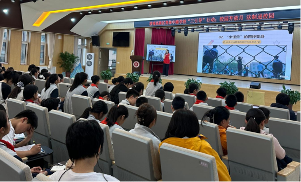 宣讲团围绕“拒绝校园欺凌,共建和谐校园”主题,结合真实典型案例,用通俗易懂、贴近校园生活的语言,系统讲解校园欺凌的法律界定、表现形式及潜在危害。宣讲过程中,宣讲团成员紧扣《未成年人保护法》《预防未成年人犯罪法》核心条款,明确指出校园欺凌绝非孩童间的玩笑,而是触碰法律红线、违背公序良俗的不良行为,引导同学们树立正确的法治观念,自觉践行“不做施暴者、不做受害者、不做旁观者”的理念,主动远离校园欺凌,学会用法律武器保护自身合法权益。